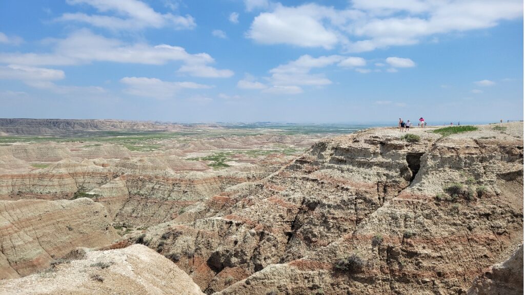 one day, although you should allow for two days if you want to do some hiking. Keep in mind that hiking in the Badlands is typically on rocks and sandy soil and is very different from hiking in a forest. You are more susceptible to dehydration as a result. If you plan to stay more than one day in the Badlands, I recommend staying at the small cabins at Cedar Pass Lodge. This is one of the few, if not the only, places to stay in the park, and it does provide an advantage because accommodations outside the park are a longer drive. It is also right next to the Badlands Visitor Center. We stayed here and loved waking up to the surrounding scenery. Food options are very limited inside the park. There is a diner at the Cedar Pass Lodge, but otherwise, you may need to pack a lunch.